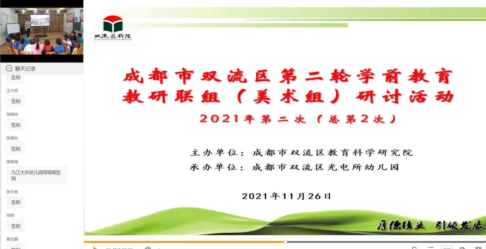 2021年11月26日,双流区第二轮学前教育教研联组(美术组)全体成员,就《初探生活化材料在幼儿园借形想象画中的运用》这一话题进行了研讨。双流区教育科学研究院学前教育研究室叶美蓉主任参与了指导。