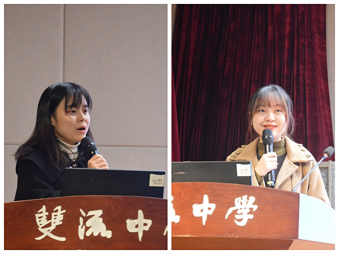 双流中学英语教研组长余晓冬老师带来了以“静听玉兰花开”为主题的分享,他与两位青年教师罗芳梅和沈丹阳分别从“花满枝头,志同道远”、“花团锦簇,共同成长”、“花靓树梢,砥砺奋进”三个部分进行了分享。余老师从“聚焦三课”、“常规底线”和“信念引领”三个方面详细地介绍了双流中学英语学科组的教学常规活动,罗老师介绍了“李元芳名师工作室”的研讨活动,沈老师从“青年教师培训”、“专业技能成长”和“师生关系构建”三个方面分享了自己来到双中后的成长故事。