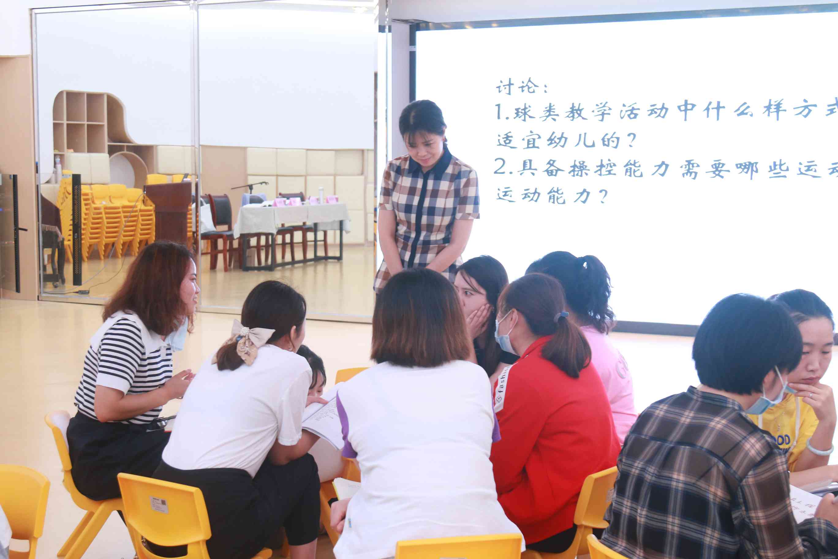 在活动过程中,联组老师首先观摩了由何婉嘉老师执教的大班体育活动《小小手球运动员》以及石富连老师执教的中班体育活动《有趣的手球》。两位老师层层递进、步步深入的组织方式,利用生动的情景激发了幼儿游戏的兴趣,在活动中锻炼了幼儿单双手持球、抛球等技能动作;接着,双流区东升丰乐幼儿园李佳玉老师进行了《幼儿园球类活动的设计与探究——以手球为例》专题分享;然后,健康联组成员在组长周老师带领下围绕“球类教学活动中什么样方式才是最适宜幼儿的?具备操控能力需要哪些运动素质与运动能力?”两个问题进行了分组研讨,健康联组教师梳理了各个年龄阶段在设计活动和实施中需要从“幼儿的自主探索”“教师的示范和讲解”以及“运动素质”方面入手;最后,区教科院叶主任从感受孩子的状态、幼儿的力量、幼儿教师的专业术语方面进行小结,引导老师在教学活动中学会反思,针对今天的活动思考学前教育与其他学段的老师和孩子学习目的是否相同?幼儿获得手球技能的载体是在于“教”还是“学”?