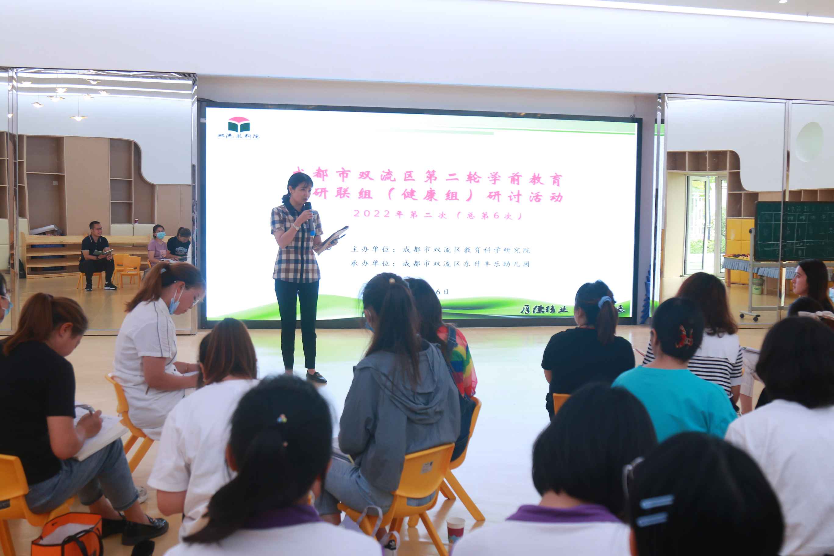 每一次遇见,都是美好的开始;每一次学习,都凝聚更好的教育能量,2022年5月26日,双流区学前教育健康联组第三次(总第6次)研讨活动在成都市双流区东升丰乐幼儿园举行。双流区教科院叶美蓉、曾云莉两位主任莅临现场,学前教育健康联组成员教师参加了本次活动。