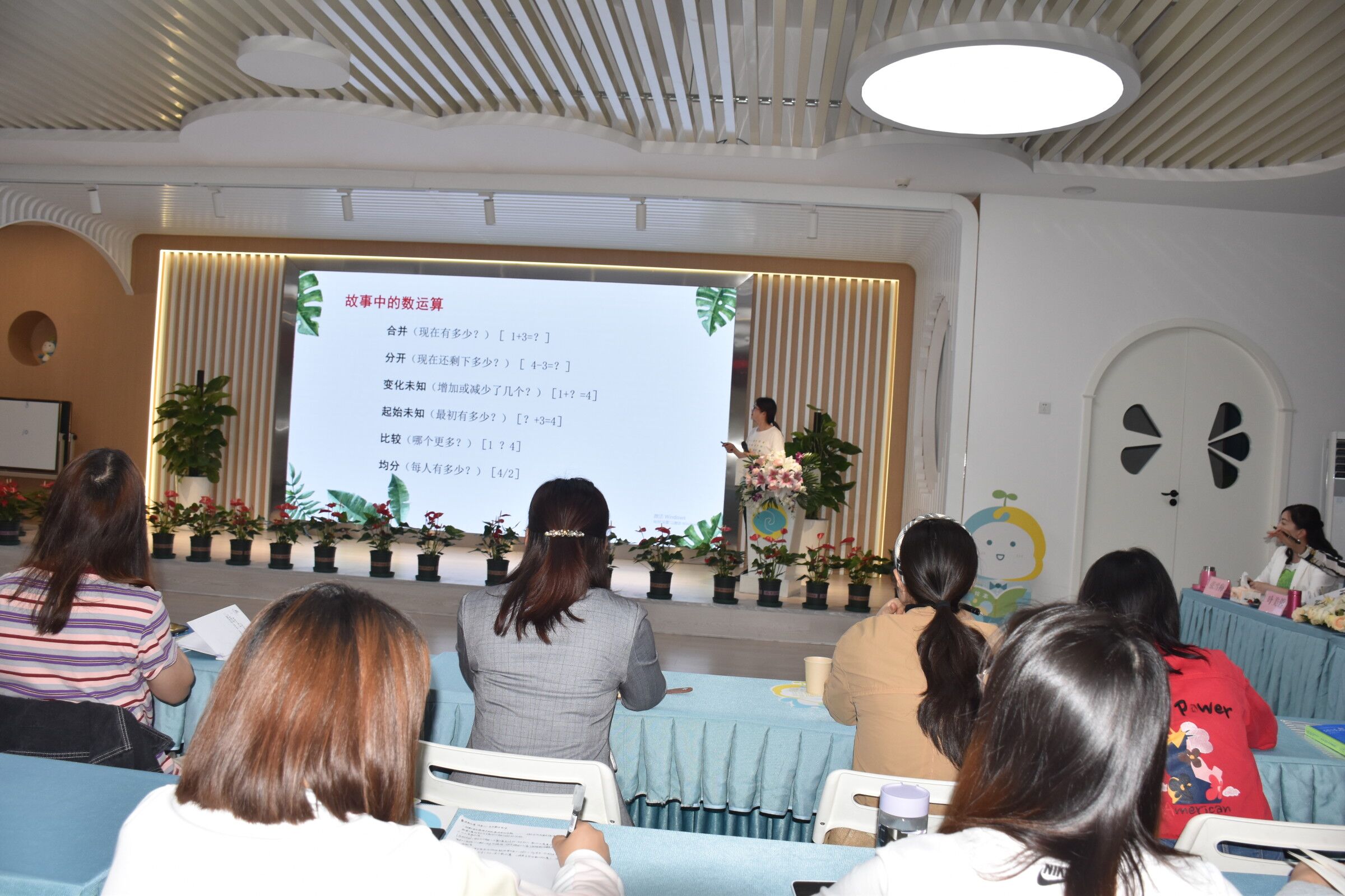 为了让参会老师们尽快理解、内化、运用数运算核心经验,成都市双流区协和幼儿园保教办曹瑞雪老师开展了以《聚焦数运算,培养幼儿良好的数学思维》为主题的理论分享。曹老师从政策文件解读、什么是数运算、数运算核心经验阐释、儿童数运算能力的发展轨迹与特点、教师支持性策略与活动等方面进行了详细讲解。在分享的过程中,有的老师积极互动与发言,他们将现学的理论及时内化并用自己的语言举出例子,让现场的氛围逐渐有了“研”的味道。