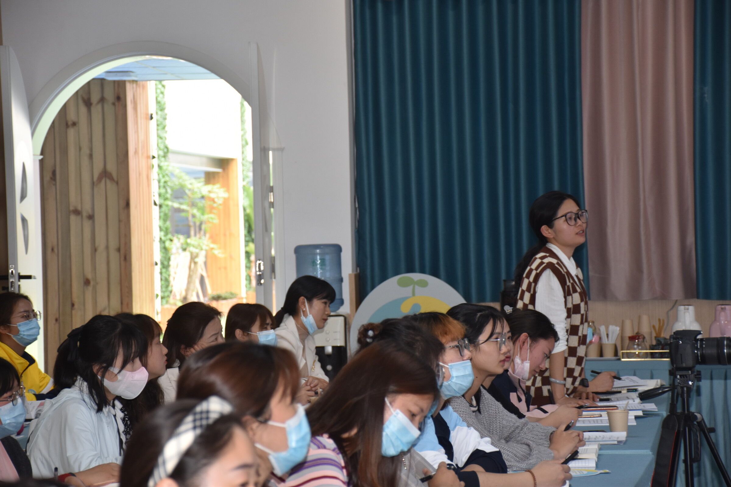 经验分享结束后,分组研讨正式开始。双流区数学联组成员分为3个组围绕3大问题展开了激烈的研讨。双流区双华欣欣幼儿园宋莉代表第二组老师总结发言,她提到张老师采用了游戏情景、语言指导开放式提问、竞赛等教学策略等内容。双流区实验幼儿园曾玲丽代表第三组提到本次《种花生》活动核心经验体现了数的分解与组合。孩子在交流推理,认知、情感能力得到发展。教师准备充分、幼儿参与感强等内容。双流区黄甲幼儿园爱贝尔分园蒋关莲代表第3组谈到教师活动准备充分,教师提的数学语言还可以再明确和精简等内容。