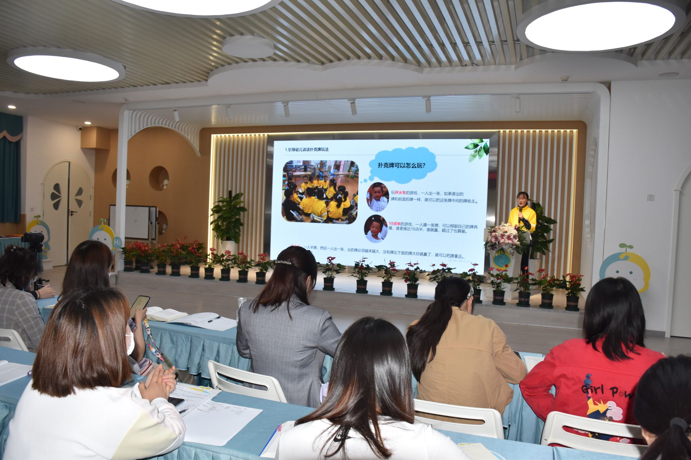 接着,协和幼儿园郑柯欣老师和张成会老师结合《3—6岁儿童学习和发展指南》、《学前儿童数学学习与发展核心经验》中数运算核心经验,聚焦大班数运算个别化材料展开了分享。郑老师首先为大家分享了大量的数运算个别材料,接着她和张老师分别重点分享了个别化材料案例《扑克大作战》和《种花生》。两位老师都注重个别化材料的趣味性,追随幼儿当前的游戏兴趣、分析幼儿的游戏行为、及时与幼儿沟通了解幼儿行为背后的原因、最终给予幼儿适宜的支持与调整。