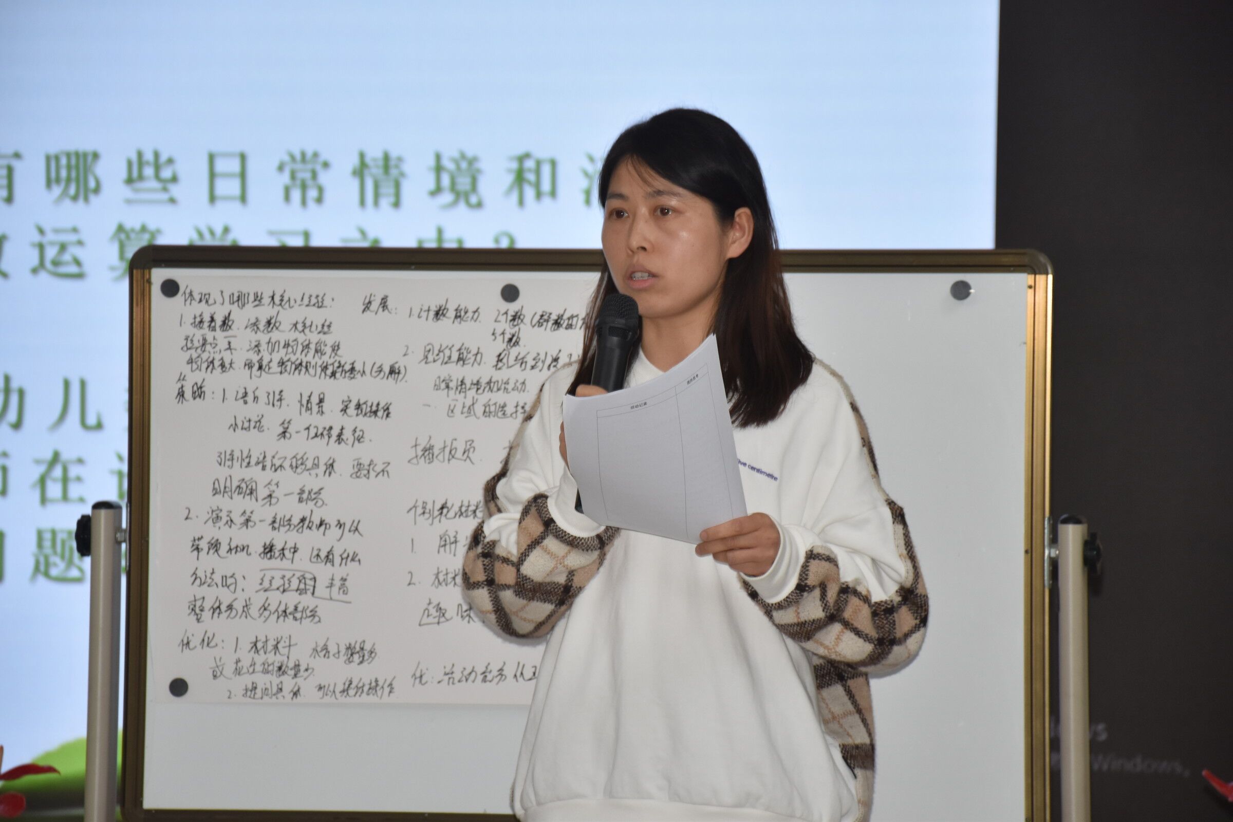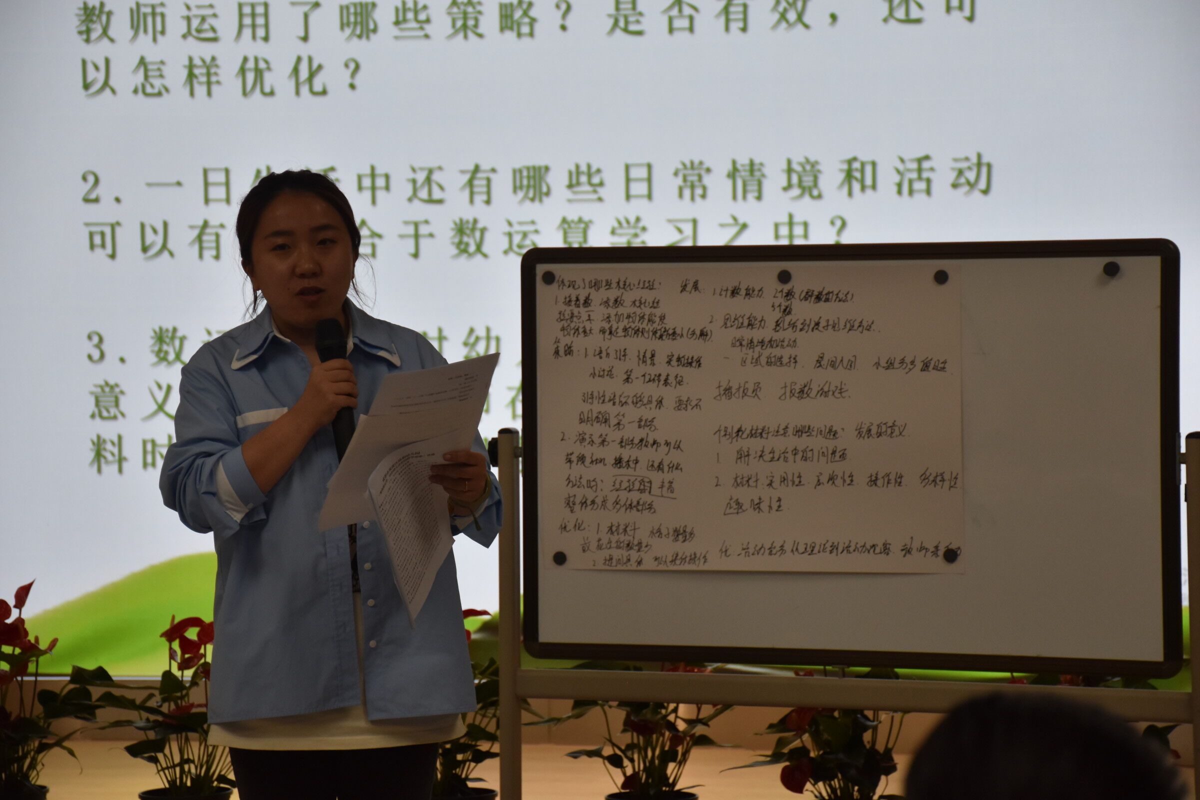 各小组发言人围绕数运算的核心经验、教师的组织方法、对活动的建议等方面给出了很多优质的建议。现场研讨高潮迭起,研讨氛围浓厚,老师们的思维进行了激烈地碰撞,大家对数运算核心经验有了进一步的理解。