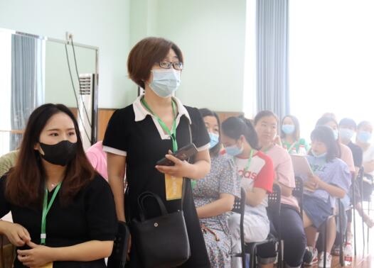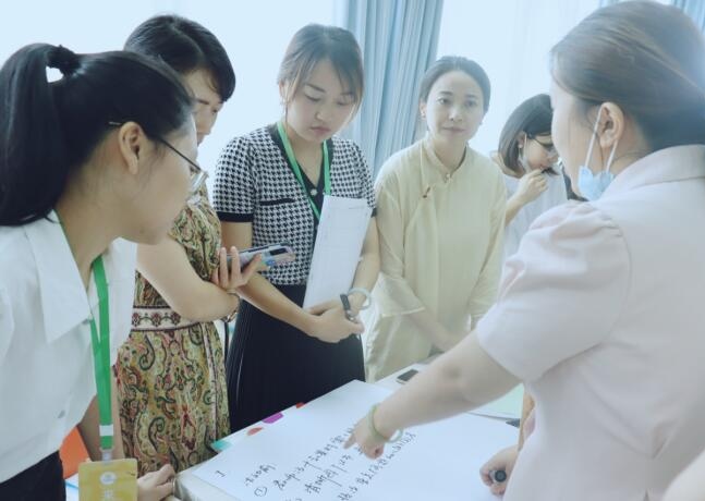 随即,参会教师以两个现场活动为依托聚焦“课例中用到哪些艺术语言来组织活动,达成了什么目的?”、“如何优化今天的活动?”、“如何避免在教学活动中重复幼儿的话语,有哪些策略?”三个话题展开了分组研讨与分享交流。