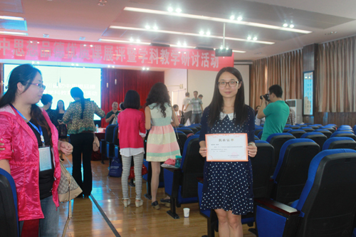 我县左晓华老师代表成都市参加了本次展评活动并最终荣获一等奖。左晓华老师选择的课题为教科版七年级下册第四课第二框《心晴雨亦晴》。她巧妙选择了学生既熟悉又喜欢的“气球”作为主线式情景教学法的线索,首先通过“吹气球”的小游戏创设情景,调节学生学习情绪,引导学生在活动中感受情绪的多样性及消极情绪的危害引出课题。体现出师生互动不应只是知识上的互动,还应包括思维的互动、情感的互动、心灵的互动这一新课程理念。然后通过“放气球”合作探究情绪之愤怒、“说气球”点拨归纳情绪之困扰、“画气球”学以致用情绪之涂鸦、“传气球”总结提升情绪之收获等活动的开展,让学生在活动中体验分享了调控消极情绪的重点方法,学会了运用所学知识解决实际生活中的情绪问题,实现了“保持积极的心态,做情绪的主人”这一情感态度价值观目标。体现出优质思品课应该具备的有魂、有神、有序、有生、有色、有效六项标准,克服了思想品德课堂教学中普遍存在的“重知识传播、能力培养,轻情感、态度价值观目标的达成;重预设、轻生成;重感性、轻理性,重课堂教学、轻课下引导践行”的不良现象,在不断增强思品课的品位和实效性方面作了有益的探索。来自四川师范大学附中的特级教师黄万红老师在点评中说:“左晓华老师创设了较好的教学情景,师生角色定位准确,牵学生手的霎那显示出老师的坦诚与坦率。在教材的使用过程中依据教材而不拘泥于教材,周公解梦的环节引入情绪ABC理论,很好地突破了教学难点。在整个教学过程中,从容大气,充分展示出了个人魅力”。