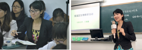 本次教研活动首先以两段国外生物教师如何带领学生开展探究活动的“引入”主题活动的视频作为本次教研活动的第一幕。教师们聚精会神地观摩了活动全程,之后展开讨论并发表了自己的意见。