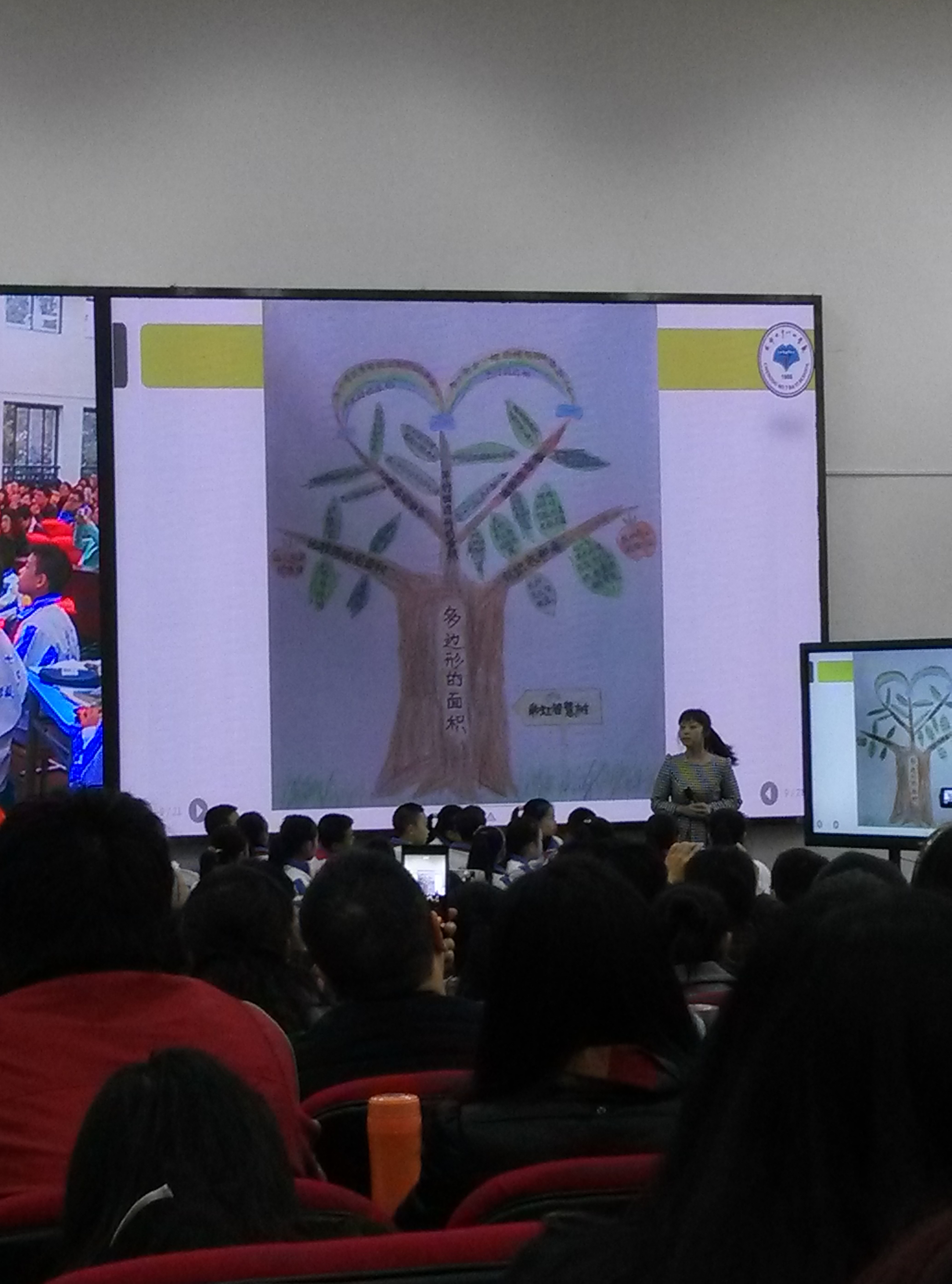 苏晗老师首先以题为《探索学力提升之路,推进金牛成就学堂》介绍了金牛区在提升学生学力方面的研究经验;接着由七中八一学校李宇老师带来一节五年级《多边形面积的整理与复习》观摩课,让参会人员见识到八一学校在数学课堂中对学生学力培养的发展状况;课后,八一学校数学教研组作了题为《生动校园,成就学力》的学校经验交流,从低中高三段分别说明(低段培养倾听能力,中段培养小组合作能力,高段的错题集和思维导图训练);石笋街小学周艳老师作了《课堂中探索学生学力培养》的老师经验交流,从课例视频中给大家展示了数学课堂中如何系统的贯彻培养学生学力的方法;金牛教培中心袁玉玲老师作了《提升学生学力,培养核心素养》的教研员交流。