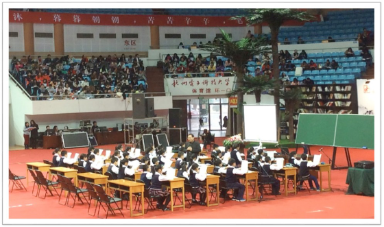 “钱塘的雨美,西湖的茶醉。人间天堂千课荟萃。”双流县罗莉名师工作室暨棠湖小学教育集团研学会一行八人在导师的带领下,于11月12日来到杭州电子科技大学,参加“新常态课堂”主题研讨观摩会。这场视觉与听觉的盛宴在动听的歌声中拉开了序幕。