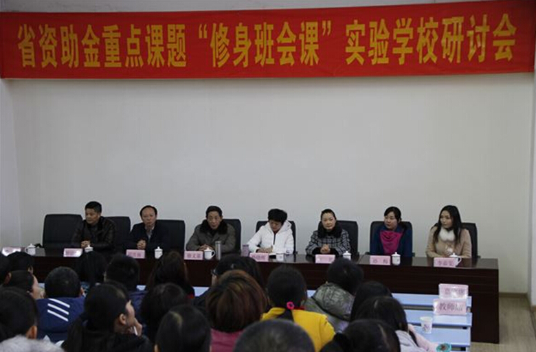 2015年12月16日,四川省资助金重点课题“普通中小学‘班会课’课程化建设与实践研究”的主研人员,棠外学监徐文基教授和名师孙晓晖,应都江堰市教育局邀请参加都江堰市“省资助金重点课题‘修身班会课’实验学校研讨暨中小学班主任培训”活动。