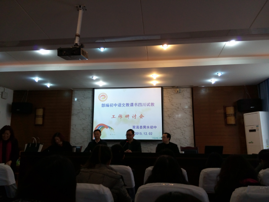 2015年12月2日,难得的冬日暖阳,部编初中语文教科书四川试教工作研讨会在双流县黄水初中召开。本次研讨会由成都市教科所何立新老师主持,成都市语文教研员戴宏老师,眉山市教研员,参与试教的成都眉山6所学校的老师们,以及刘勇工作室全体成员参加了本次试教研讨会。