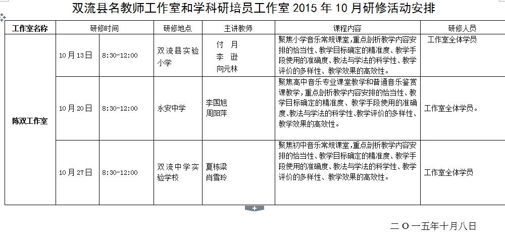双流县名教师工作室和学科研培员工作室2015年10月研修活动安排(陈双工作室)_陈双工作室_双流名师工作室