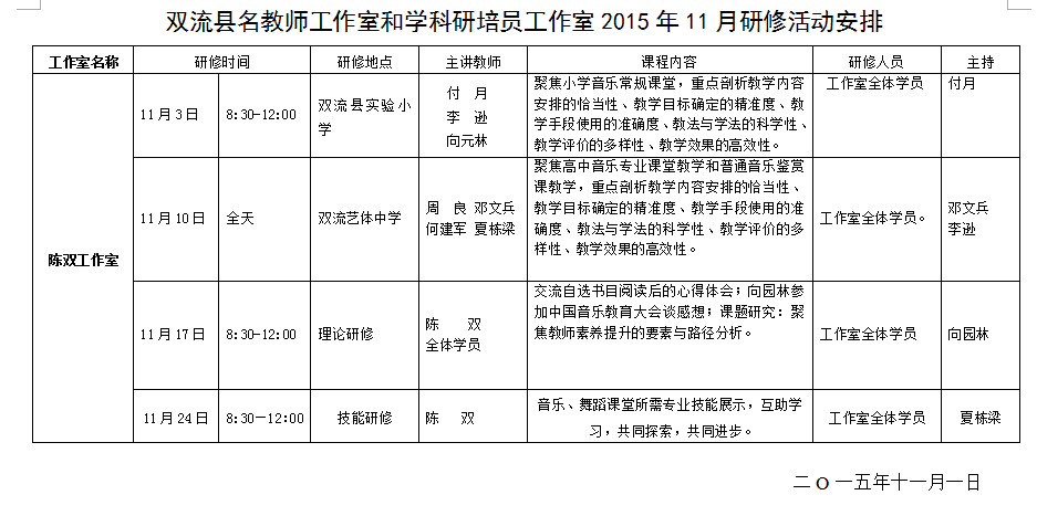 双流县名教师工作室和学科研培员工作室2015年11月研修活动安排(陈双工作室)