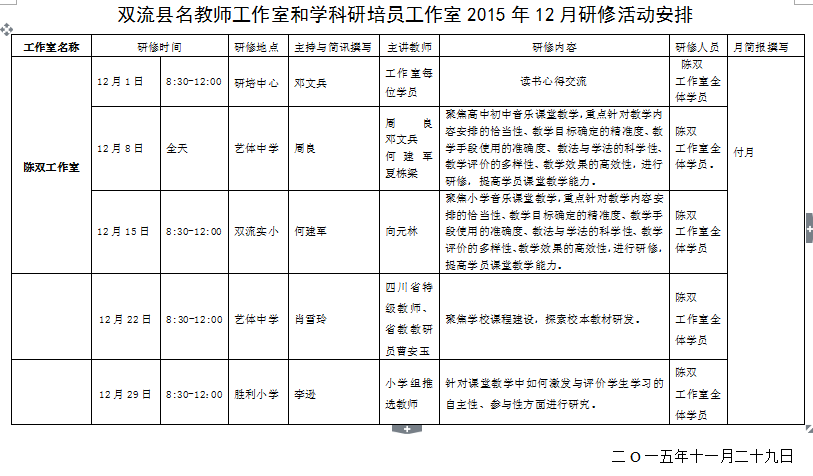 双流县名教师工作室和学科研培员工作室2015年12月研修活动安排(陈双工作室)