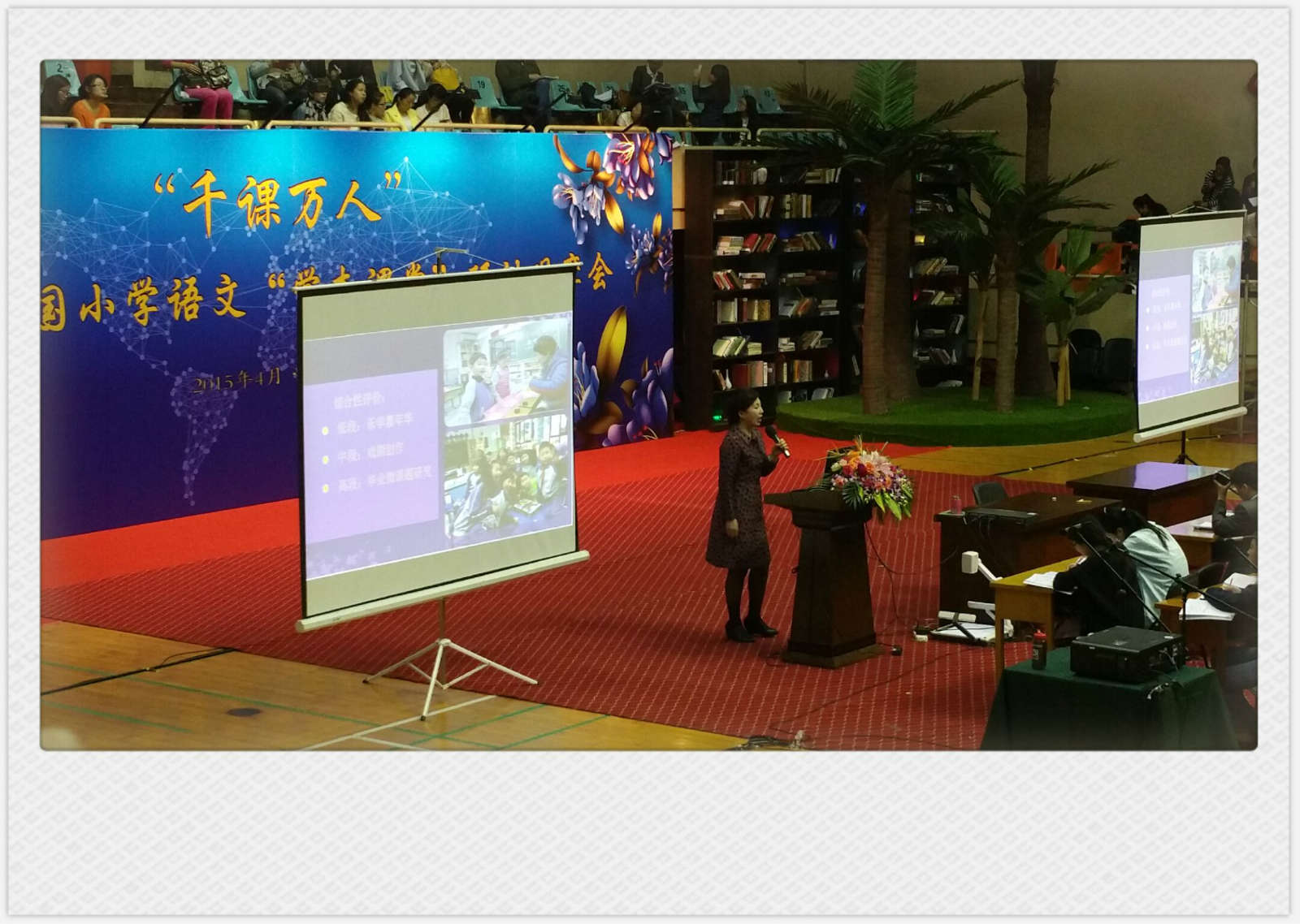 上午是清华附小的“专场”,领军人物窦桂梅校长做了《基于学生核心素养发展的主题教学》的报告。她充满激情地讲述了主题教学的发展历程、实践样态、发展方向与展望。激情的语言,深情的诉说,我们看到一朵“玫瑰”永远在超越的路上绽放!接下来就是清华附小团队的展示:首先是帅气的王峰老师带来的《己所不欲勿施于人》,这是一堂“语言与人文”的整合课,既有对小古文学习方法的指导,亦有跟孩子们生活的紧密相连。紧接着是全国著名特级教师王玲湘执教《琥珀》,她紧紧围绕科学小品文的特征,采用“推测”的策略。在预学中整合学生的提问,梳理文章脉络;在共学中通过前后联系、创设情景、分角色朗读等手段,让学生深入揣摩蜘蛛和苍蝇不同的心理,推测当时可能发生的情景;在延学中鼓励学生大胆质疑,让课堂的学习延伸到课外。我们看到清华附小在主题教学的引领下,始终走在全国小学教育的前沿,为学生的聪慧和高贵奠定坚实的基础。