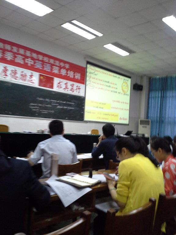 三、工作室成功地承办了本月在四川省双流县中学举办的成都市英语菜单培训,在培训活动中,巫丽娜老师献课。