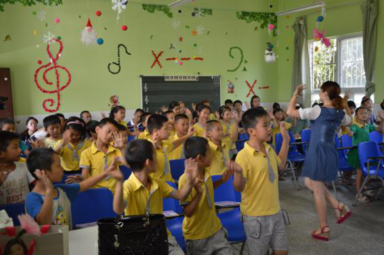 随后,工作室学员、双流县九江小学音乐教师李逊的这堂课,更是让大家眼前一亮,尽管大家对李逊老师的课堂教学模式以及教学习惯已经熟悉了,但是,今天的这堂课李逊老师做的也不亚于攀枝花的刘婷老师,李逊老师用充满童趣的教学语言,以讲故事的形式来展示了《三只小猪》这堂课的主题音乐,并且对音乐的乐器和音乐的段落进行了分析,二年级的小朋友们在一系列快乐的课堂学习活动中,感受到了音乐带来的快乐。