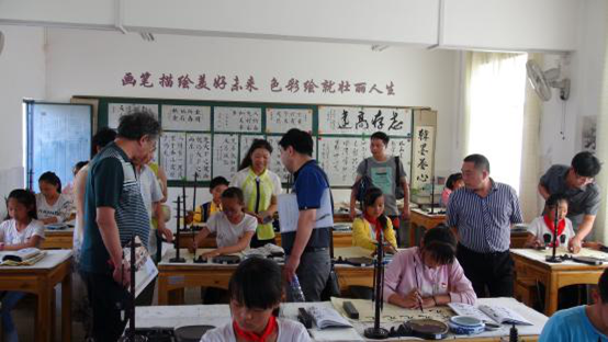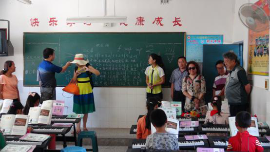 专家组以及工作室一行人首先观看了学校课外艺术活动开展情况。令考察组意想不到的是,这样一个偏远的乡村学校居然开设有民歌、民舞、月琴、扬琴、竹笛、二胡、三弦、葫芦丝、刺绣、剪纸、绘画、书法、棋类、摄影与电脑制作、科技实践等23各活动项目,学生100%参与各项活动,学校854人次参加区级以上竞赛获奖,2012年8月学校集体舞获得四川省第七届中小学生艺术节校园集体舞一等奖。