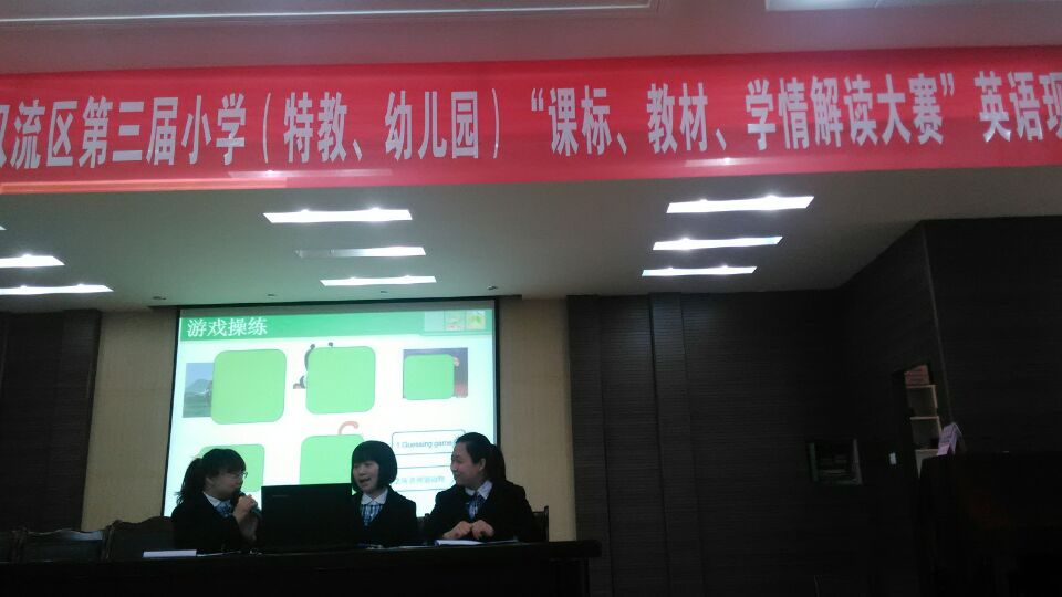 2016年15日,双流区小学英语教材解读大赛拉开了帷幕。作为成立双流区的第一个重量级的比赛,谯婕工作室学员都积极参与。并且精心准备。通过实时活动,视频活动等,充分展示了学员们的个人教学魅力,团队的教研能力。来自黄水小学的熊进团队,来自胜利小学的付永婷团队,来自实验小学的刘蝶团队都为我们呈现出精彩的教材解读。黄水小学提出的“灵动”课堂,实验小学提出的“乐活”英语,都既研究了教材,又研究了学生,两线结合,纵横贯通。给与了我们新的教学视野。而胜利小学的对课文层层解析,细致到每个活动,也让我们耳目一新。作为每个学校的核心成员,熊进,付永婷,以及刘蝶老师展现的教师的核心素养和导师谯婕的教导是密不可分的。通过这样的活动,我们也再一次提升了自己,为今后的教学之路更添光彩。