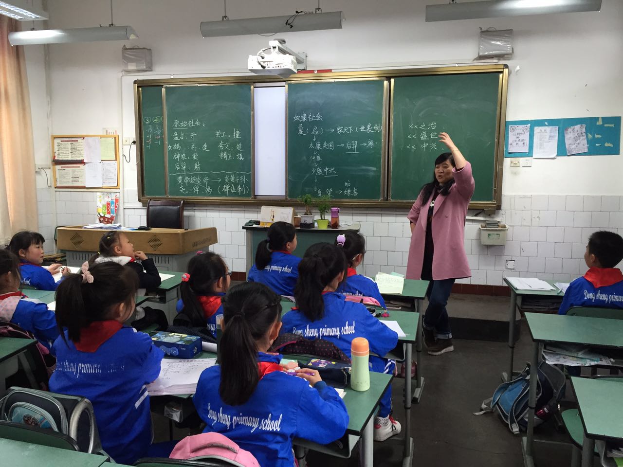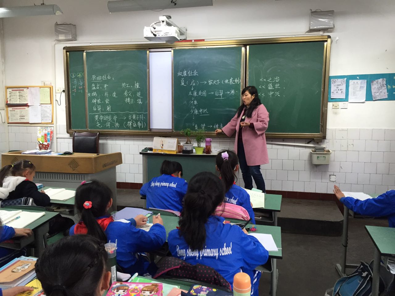 此时四、六班教室,不停地传出孩子们银铃般的欢笑声。紧接着导师又给孩子们讲述“奴隶社会”,从夏启讲到了夏桀,从孩子们专注地眼神中我读出了渴望,那种对知识的渴求,导师把深奥的历史故事转化为浅显的语言渗透入学员们和孩子们的心灵深处。每个人都会希望自己有这么一个诙谐幽默的老师!
