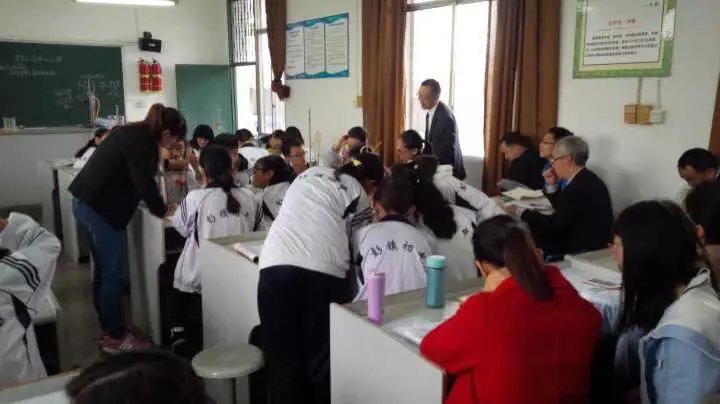 蒋成波老师则采用实验导入,采用棠湖中学“三段式教学法”,由问题的形式一步一步的引导学生进行实验探究。两位老师都采用了小组合作的学习方法,也体现本次送教活动的目的:探讨传统教学和小组合作教学的利弊。