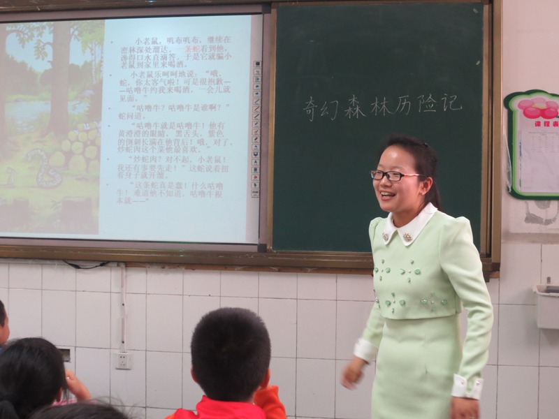 首先由工作室学员张琼执教习作课《奇幻森林历险记》,张老师首先出示森林图片导入新课,再由一只聪明可爱的小老鼠将学生拉入他们最喜欢的童话世界。故事中小老鼠的“三险”,让学生有自由表达的空间,在老师的引导下,感受童话故事中的反复情节。随后,让学生在童话王国里根据故事情节,小组合作,展开想象,进行童话故事创编。接着师傅带领我们观看了著名的特级教师虞大明执教习作课《爸爸(妈妈),我想对您说》的课堂教学实录,虞老师富有磁性的声音引领学生感受父母爱、走进父母爱。教学中,虞老师以多篇文章入手,学生在读中去感悟,得到情感的碰撞。再以自己的范文为例,引导学生去发现,并提炼出把事情写具体的“良方”:动作、语言、神态。老师恰到好处的评价语,更是引导学生应该如何将事情写具体。