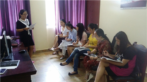 今天,小师妹王斯馨为我们带来了她的第一次课例<It’s children’s day>,她没有一定的教学经验,但是她努力专研,分析课文的重难点,寻找课堂的课脉,想为我们呈现一节精彩的课堂。学员们一起分析课文,一起讨论,从热身,引入,课文呈现,操练等一一为她讲解,师傅谯婕更是一个一个讲解,让她从迷茫走向清晰,帮助她慢慢“消化”。这就是学员们成长的变化,是每一个人成长的过程。