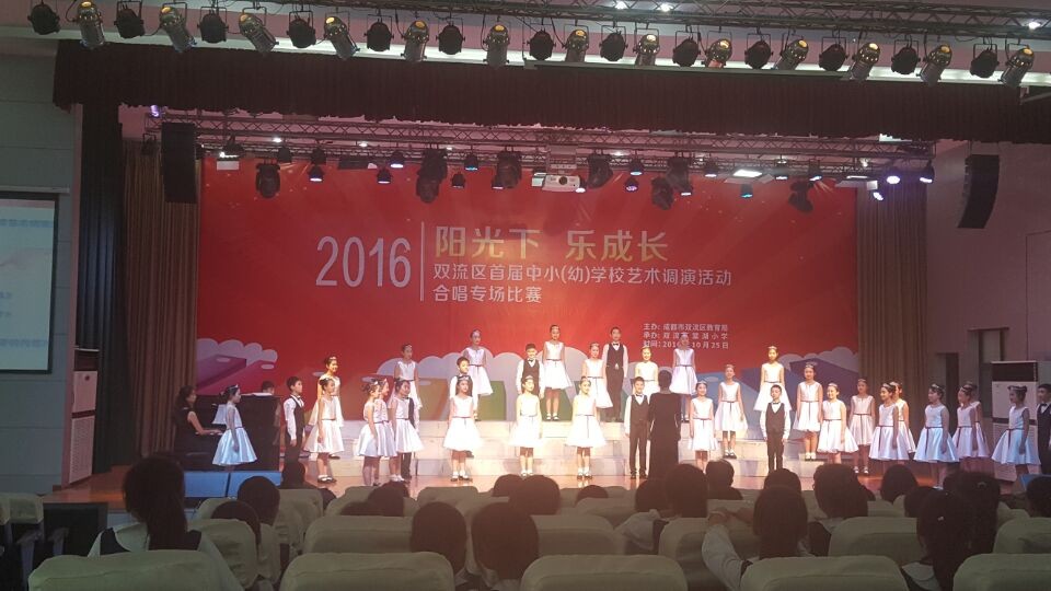 2016年10月25日,为2016年“阳光下·乐成长”双流区首届中小(幼)学校艺术调演活动合唱专场比赛现场,来自全区中学、小学40余支合唱队参与了此次活动。“德艺双馨”陈双音乐名师工作室全体成员参与了此次活动。