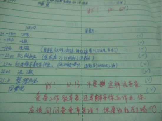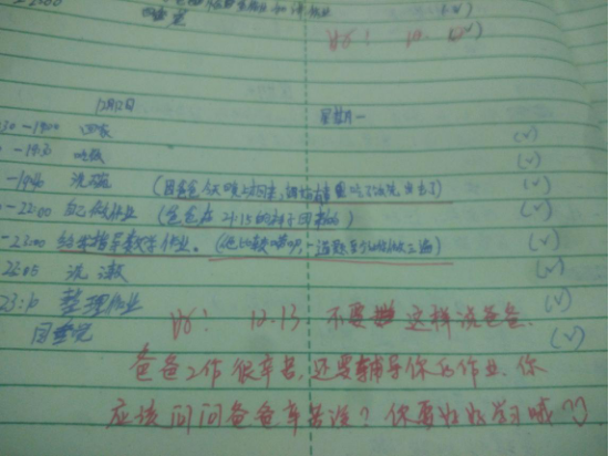 1、作业督促:经常检查孩子的作业情况。无力指导看对错。看是“√”和 “×”。、