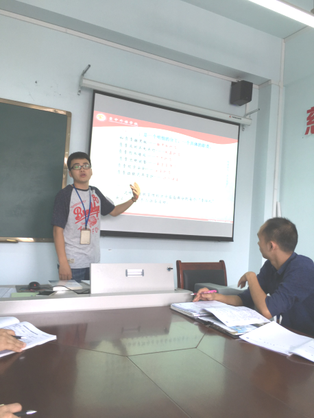 工作室成员张天涯老师,首先给在座的新班主任介绍了修身班会课的概况。从修身班会课目前所取得的阶段性成果,到修身班会课的课型分为主题班会和常态班会,再到修身班会课的四大环节:“担当总结”、“教师评价”、“故事讲述”和“教师引领”,张老师用他实际的教学经验以及幽默的语言给大家做了《如何上好修身班会》的详细介绍。