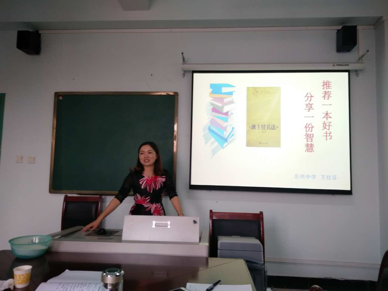王仕芬老师则是作了《班主任兵法》的交流分享。她着重分析了万玮老师的这本书的特点是很务实,可立竿见影胡运用于班务工作中,大家听后都受益良多。