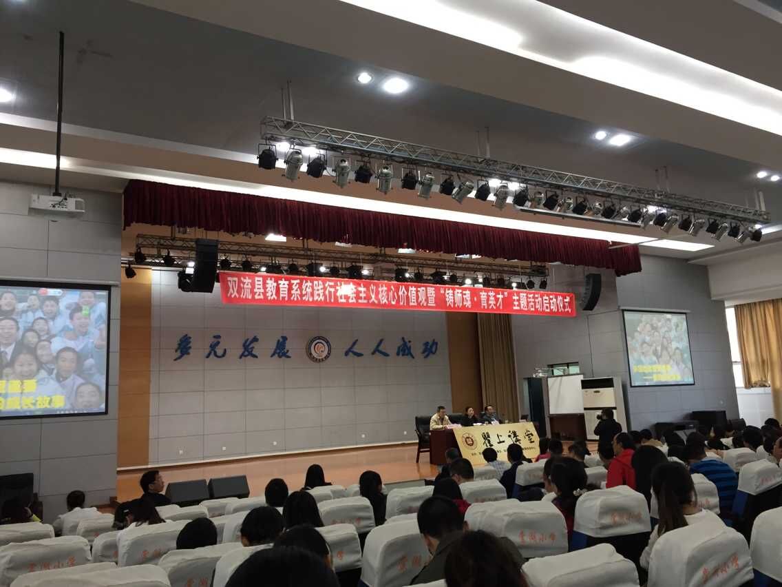 清新淡雅的秋日伴着和煦轻柔的秋风,10月27日上午,吴明渠工作室的全体学员在导师的带领下一起来到美丽的棠小,参加双流县教育系统践行社会主义核心价值观暨“铸师魂.育英才”主题活动启动仪式及“瞿上讲堂”第十六讲活动。