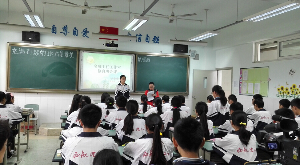 2015年11月3日,为进一步提高学员对于“修身班会课”课程的理解,孙晓晖名班主任工作室成员齐聚双流县西航港第二中学,继续开展“修身班会课”的课例研讨活动。此次公开课由杨南老师承担。西航港二中校长左学明老师等校领导以及该校部分班主任到场听课。